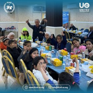 Children actively engaged in creative activities, expressing their dreams of a safer world. The day concluded with an iftar gathering, bringing attendees together in a warm humanitarian atmosphere that reflected the spirit of solidarity and hope.